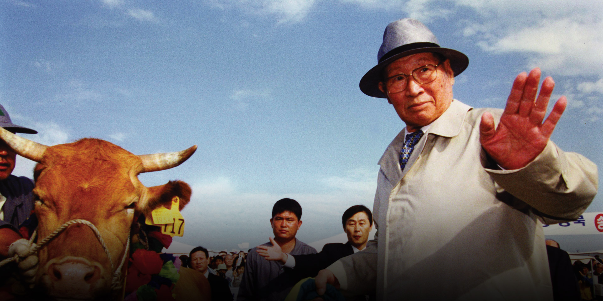 1998.6.16 소떼방북 정주영 명예회장은 분단의 상징인 판문점을 경유해, 500마리 소떼와 함께 북측을 방문했다. 정 명예회장의 소떼방북은 전 세계에 금강산관광을 비롯해 남북경협시대의 서막을 알리는 신호가 되었다.