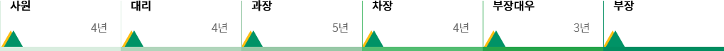 사원4년, 대리 4년, 과장 5년, 차장 4년, 부장대우 3년, 부장