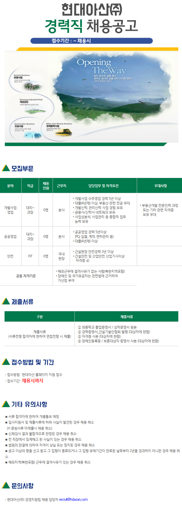 건설부문 경력직 채용