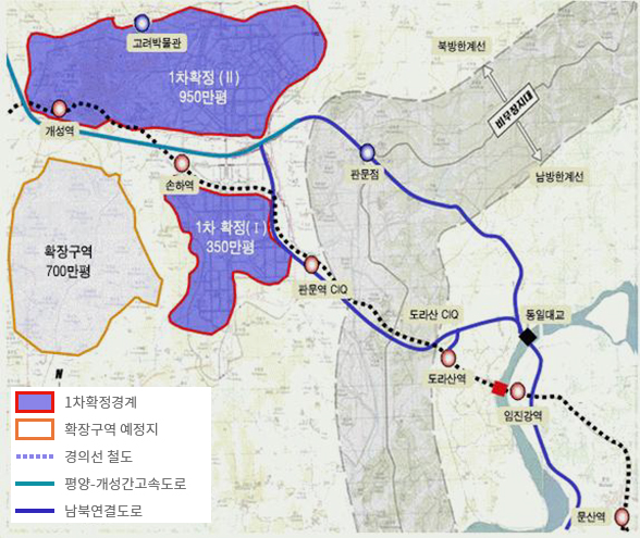 개성시가지 : 13.1 ㎢ (400만평) → 북측이 자체개발 예정