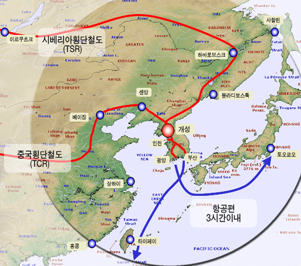 국토의 X자형 축의 중앙에 위치하여 남북간 인적·물적 교류가 용이한 지역이다. 인천항 및 평택항 등 무역항과 평양공항 및 인천공항 등 국제공항에 접근해 미주 및 아시아 대륙으로 물류수송이 용이하며, 중국 대륙간철도(TCR) 및 시베리아횡단철도(TSR) 등을 이용하여 유럽으로 직접연결이 가능하다.