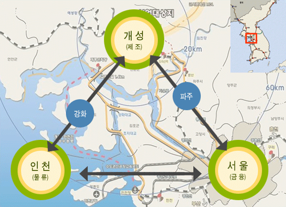 소비인구를 가진 남측의 수도권지역과 연접하여 제품판매를 위한 소비시장이 확보되어 있다. 지리적으로 남측지역에 근접해 남측의 전력통신 등 초기기반시설의 활용이 가능하며, 도로나 철도와 같은 수송기반시설의 연결비용이 적게 든다.